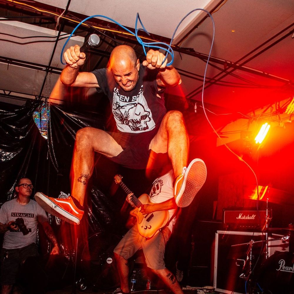 In person, the goth-rock overtones mostly disappear from Syndrome 81. Those reverby production decisions don’t necessarily translate to the DIY-space sound system, and what we’re left with instead is an exceptional oi band with style and energy and hooks to burn. Damien looks a bit like an overgrown toddler, which works well for an oi frontman; he also jumps around with a whole lot more vigor than most fortysomething bandleaders. The charged-up anthems don’t turn the local hardcore-scene venue into the warzone that it sometimes becomes, but oi isn’t really mosh music, and much of the crowd for this night seems just as old as the people in the band. I’m two years older than those OG Syndrome 81 guys, and it’s been a while since I’ve seen so many fellow greybeards at a DIY gig. Older people don’t kill each other in the same way, and maybe oi is music for older people, at least compared to much of the greater hardcore world. As an older person, I’m good with that.